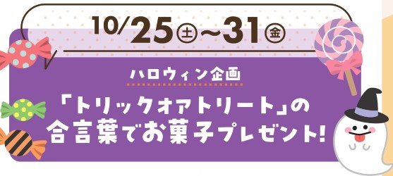 ホーム お知らせ・イベント 10/25(土)~31(金)ハロウィン企画🎃 合言葉でお菓子プレゼント 10/25(土)~31(金)ハロウィン企画🎃 合言葉でお菓子プレゼント お子様限定ハロウィン企画! フロントで合言葉言ってね🎃 関連するお知らせ・イベント 5月イベントカレンダー 8/31まで 恐竜ぬり絵展示中 福井県立大学生の方限定!越のゆグループ学割クーポン 4月イベントカレンダー