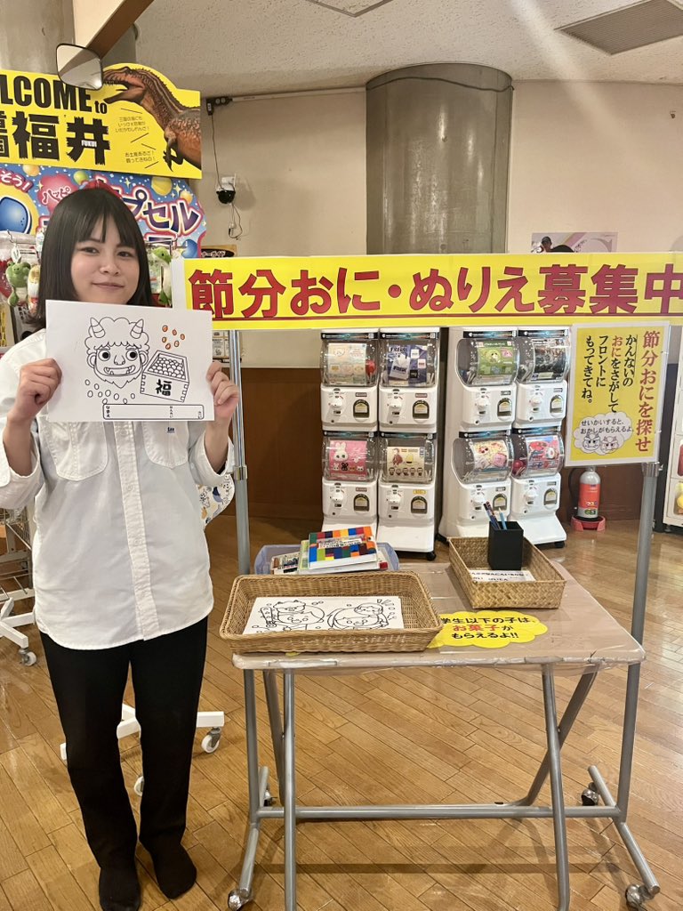 ホーム お知らせ・イベント 2/15(日)まで『節分イベント』開催中! 2/15(日)まで『節分イベント』開催中! 2/15(日)まで『節分イベント』開催中! ❶オニを探せ! 館内にいるオニを探してフロントに数を教えてください 正解するとお菓子をプレゼント ❷オニのぬり絵大会 ぬり絵をフロントにもってくるとお菓子をプレゼント ゆあぽ〜とで節分を楽しもう! 関連するお知らせ・イベント 5月イベントカレンダー 福井県立大学生の方限定!越のゆグループ学割クーポン 4月イベントカレンダー 11/23(日)・11/24(祝)『りんご風呂』開催!